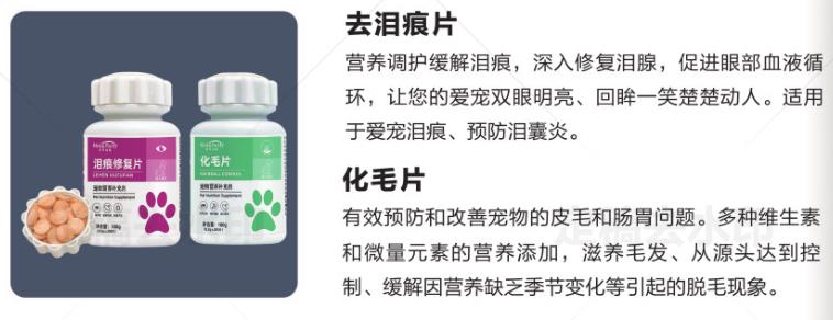 營養調護緩解淚痕,深入修復淚腺,促進眼部血液循環,讓您的愛寵雙眼明亮、回眸一笑楚楚動人。適用于愛寵淚痕、預防淚囊炎。